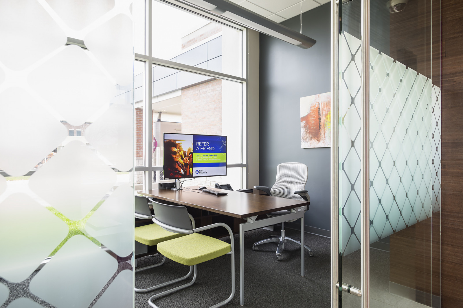 With the less-drywall-more-glass concept, we had to overcome the perception of members that there was less privacy and security. There was a need to seamlessly build in various protections to help put members at ease and protect their sensitive financial information.