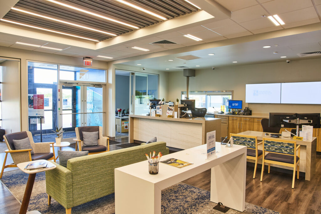 Every client is different, and every client has different locations and space needs to work with. For Farmers & Merchants Bank, the spaces they were working with already existed, but they were empty shells. They needed a client who could work with pre-existing spaces, not just a ground-up build firm. This client needed to be able to adapt their brand standards to several different space requirements and sizes to find a fit and style that would work regardless of the area. As a completely in-house design and build firm with renovation and ground-up experience, NewGround was the perfect fit for the job.