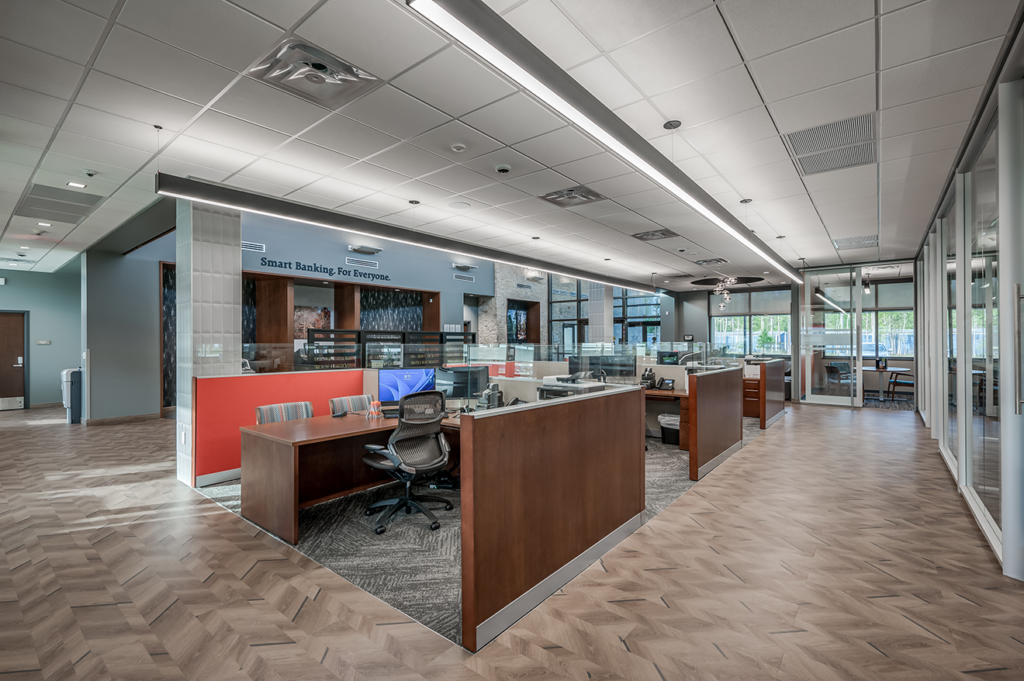 As demographics grow, change, and evolve, sometimes credit unions must also evolve and adapt to stay relevant to not only their existing member base, but also to a new member base as well. Education First FCU wanted to move to a steadily growing market in Lumberton by creating a flagship branch that would appeal to a large number of community members. They also wanted to provide their community with a space to meet outside of regular credit union operating hours. Education First FCU already had the location and site picked out, but they needed someone to build the space from the ground up, with full-service retail branch capabilities and ample space for community members. NewGround was happy to bring Education First FCU’s groundbreaking vision to life.