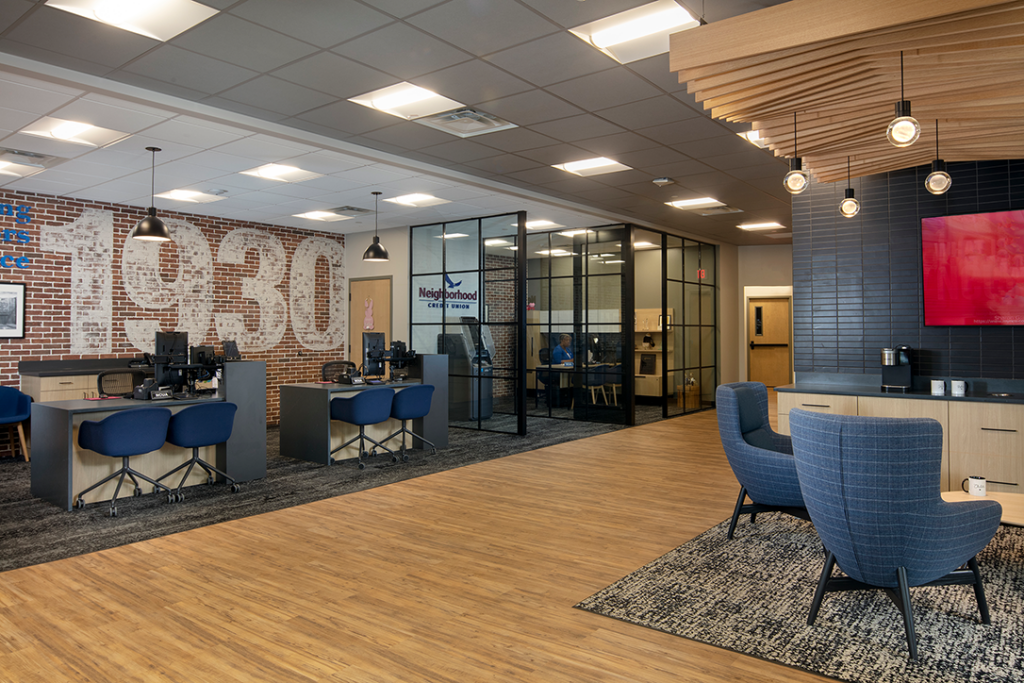 Neighborhood Credit Union knows the future of banking is changing – and the financial market with it. For financial institutions to remain successful and relevant, they cannot just adapt to these changes as they emerge. They must instead predict them and take risks to meet them, or better yet, set the new market standard themselves. In order to pursue a new branch idea, Neighborhood Credit Union partnered with NewGround to depart from their traditional branch layout.