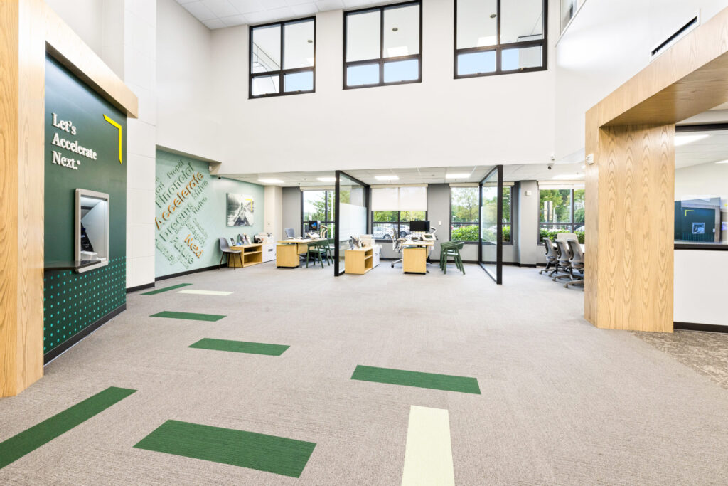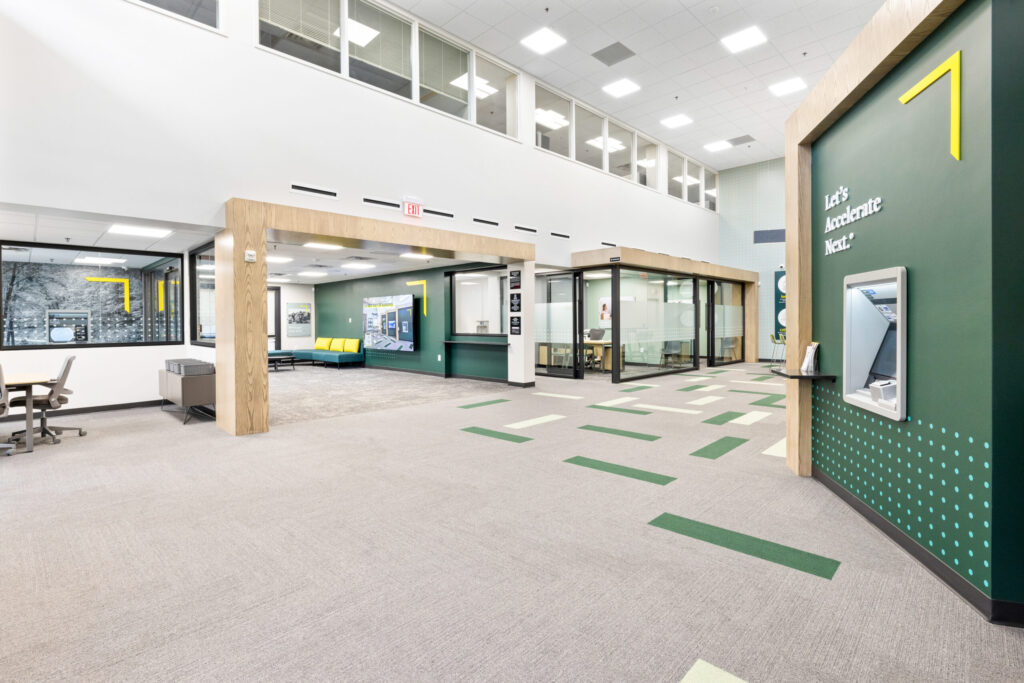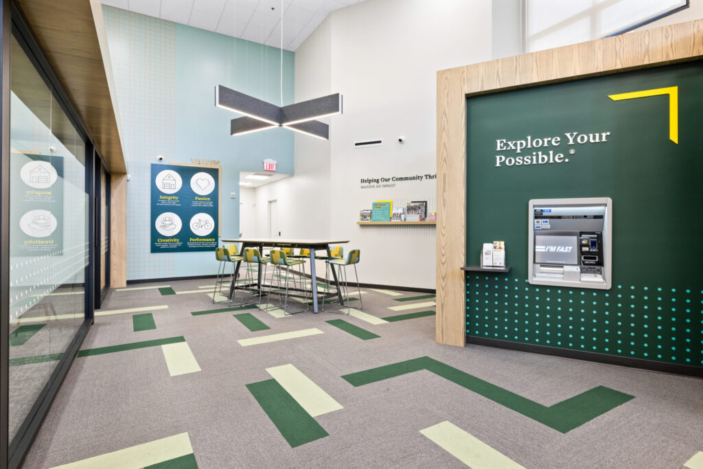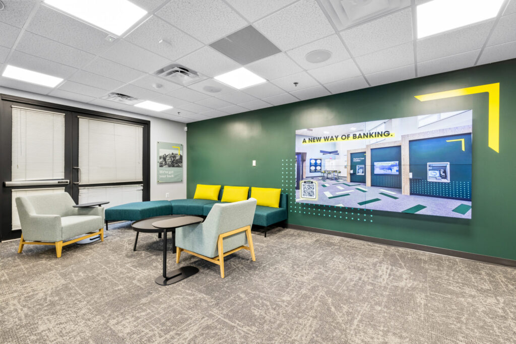 After conducting a market study with NewGround, NextMark decided to rebrand and update their branches. Like their branding, their spaces needed to look new, inviting, and modern. To accomplish this, NextMark set out to redo a branch interior within their retail lobby. The space was built in the early 2000s with ten teller line stations, though only two were still in use. With plenty of space that wasn’t being fully optimized, they needed professionals who could take the space and revolutionize it for their consumers.