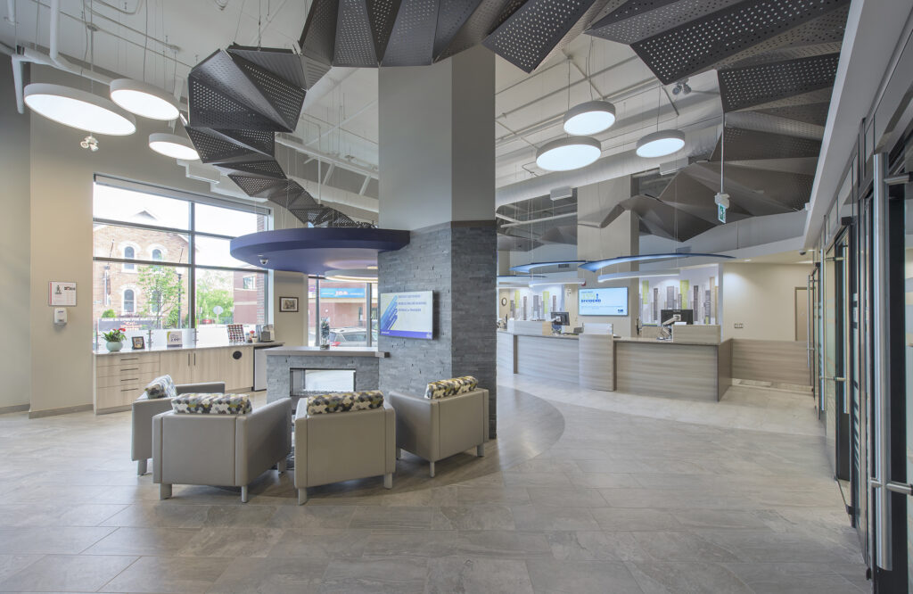 Stouffville, ON, is an affluent community just north of Toronto, and one of the fastest-growing towns in the region. The boom brought with it a profusion of development, both commercial and residential, and so PACE Credit Union (PACE) began looking to expand into the community, turning to their long-time partner, NewGround, to design their flagship branch.