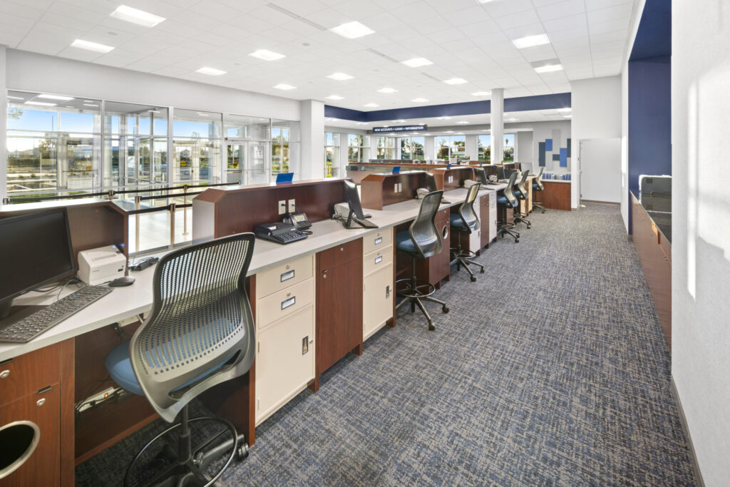 Safe 1 Credit Union services many of the local farmers and workers, elements that NewGround incorporated into the interior design. Each design element tied into the overall brand identity, and NewGround maintained a sturdy virtual communication with the client to ensure their satisfaction every step of the way. NewGround met every challenge, from supply chain issues to safety protocol integrations, and delivered a branch that melds perfectly with the existing brand identity.